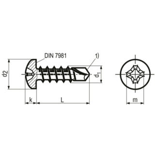 Linsen-Bohrschrauben ~DIN 7504 N ST 2,9 x 16 BN1878 ecosyn® drill N mit Kreuzschlitz Phillips Form H Stahl einsatzgehärtet verzinkt-blau nach DIN ISO Abmessungen siehe Zeichnung : d1: 2,9mm L: 16