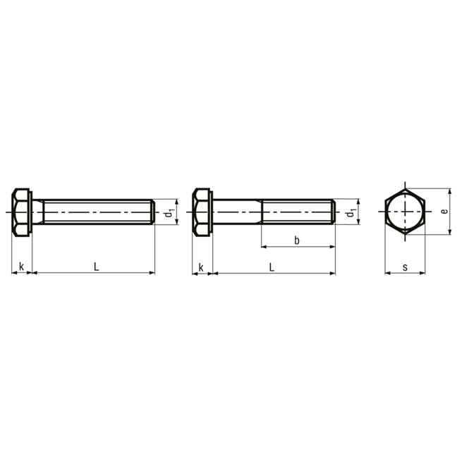Sechskantschrauben UNC 3/8″” x 1 3/4″” /s9/16 BN67 Stahl 8.8/Grade 5.2 verzinkt blau nach DIN ISO Abmessungen siehe Zeichnung : d1: 3/8mm L: 1 3/4mm L: 9/16″