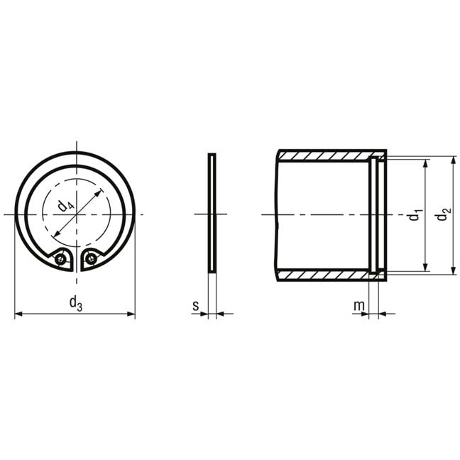 Sicherungsringe für Bohrungen 58 BN683 INOX 1.4110/1.4116/1.4122 BEMERKUNG: Verbindungselemente aus martensitischen Chrom-Stählen z.B. 1.4116/1.4110/1.4122, eingesetzt unter bestimmten klimatischen Bedingungen: Spannungsrisskorrosion möglich ! nach DIN 472 ISO Abmessungen siehe Zeichnung : d1: 58