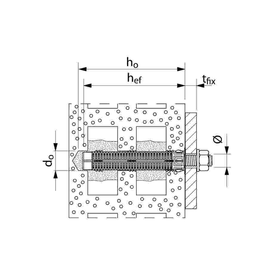 geeignet für: Hochlochziegel, Kalksand-Lochstein, Hohlblockstein aus Leichtbeton, Hohldecken aus Ziegel, Beton u.ä.