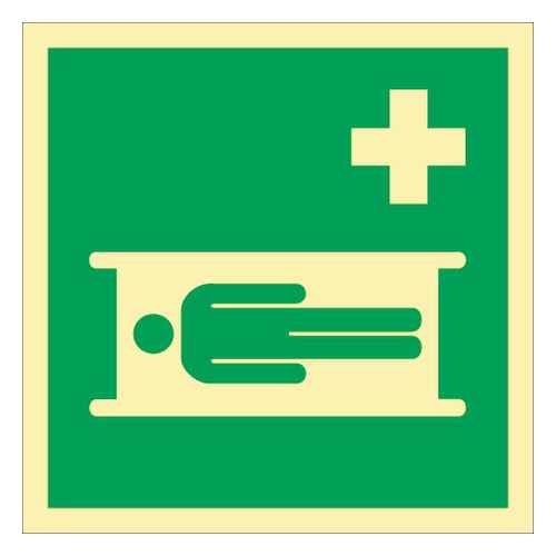 selbstklebende Folie · Symbol und Lichtkante langnachleuchtend · nach neue ASR A1.3/DIN EN ISO 7010 und DIN 67510 · Krankentrage