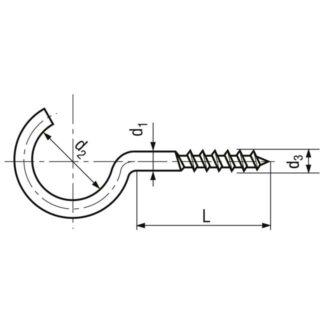 Haken-Holzschrauben 2,8/2,3 x10 / 6 BN973 Stahl verzinkt blau nach DIN ISO Abmessungen siehe Zeichnung : d1: 2,8mm L: 10mm L: 6