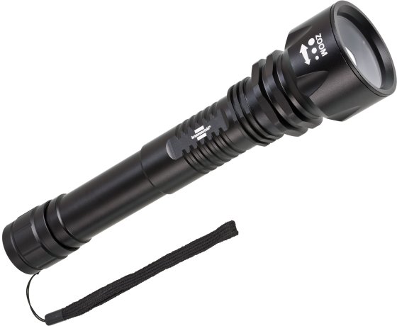 Power-Taschenlampe mit höchster Leuchtkraft und -dauer bietet umfangreiche Funktionen: 100% – 40% – 10% – strobe – SOS