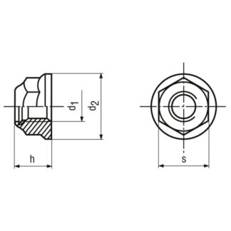 Sicherungsmuttern Flansch M 10 BN6783 und Polyamideinlage Stahl 8 verzinkt blau nach DIN 6926 ISO 7043 Abmessungen siehe Zeichnung : d1: 10