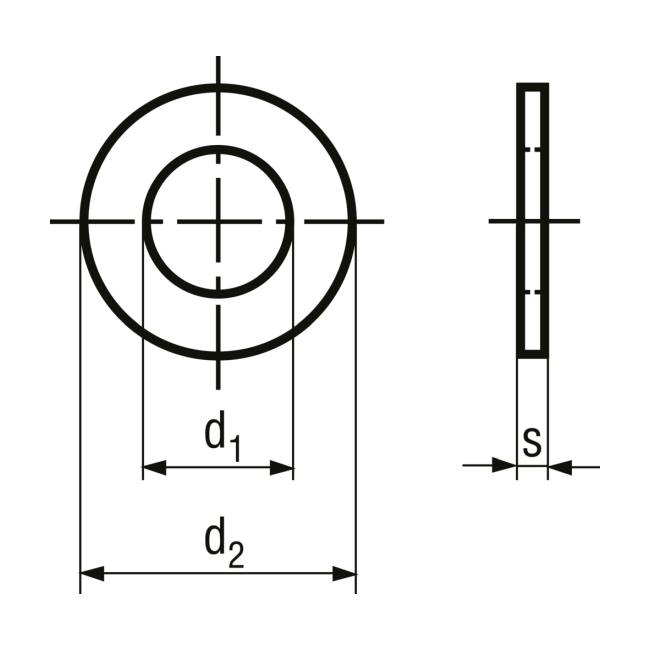 Scheiben ohne Fase M 12 / 13/20/2 BN1414 INOX A2 Härteklasse 140 HV nach DIN 433 ISO Abmessungen siehe Zeichnung : d1: 12mm L: 13/20/2