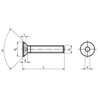 Schrauben Senkkopf Innensechskant M 14 x 100 / 100 BN20 ohne Schaft Stahl 010.9 / 10.9 schwarz nach DIN 7991 ISO Abmessungen siehe Zeichnung : d1: 14mm L: 100mm L: 100