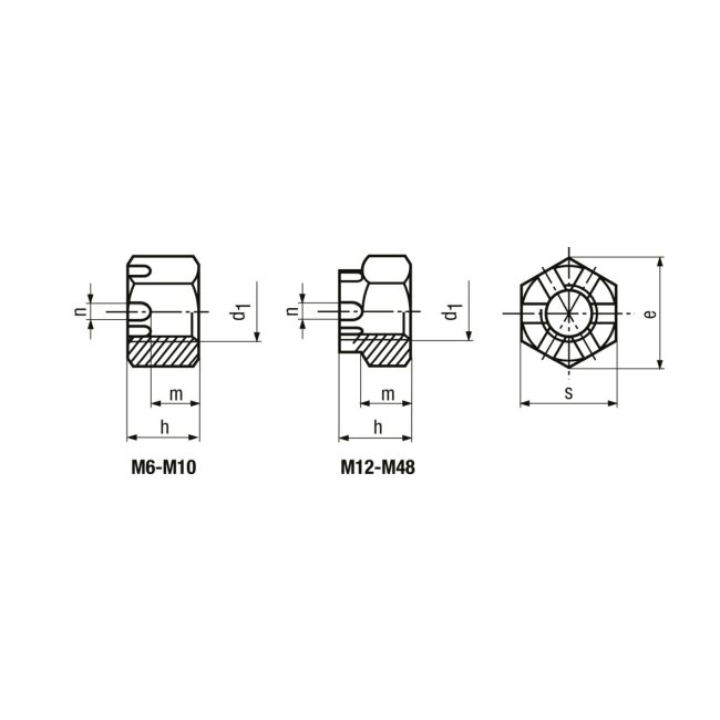 Sechskant-Kronenmuttern M14 / DIN/s22 BN157