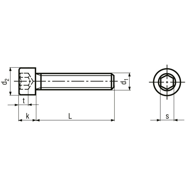 Schrauben Zylinderkopf Innensechskant M 2,5 x 30 / 30 BN7 ohne Schaft Stahl 12.9 schwarz nach DIN 912 ISO 4762 Abmessungen siehe Zeichnung : d1: 2,5mm L: 30mm L: 30