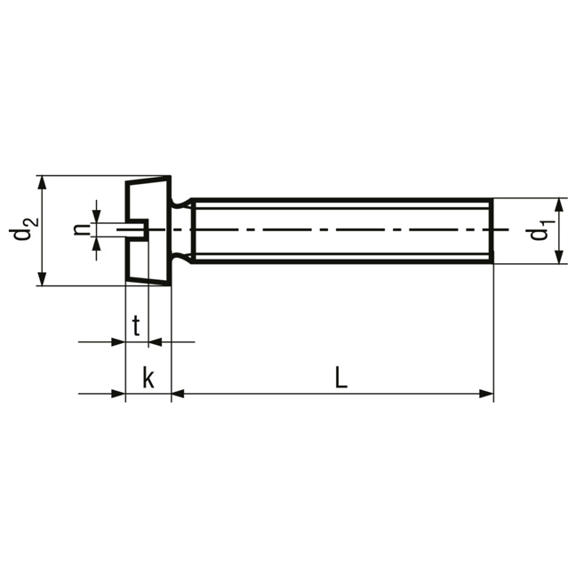 Schrauben Zylinderkopf Schlitz ~DIN 84A M 4 x 40 BN1061 Polyamid 6.6 natur nach DIN ISO Abmessungen siehe Zeichnung : d1: 4mm L: 40
