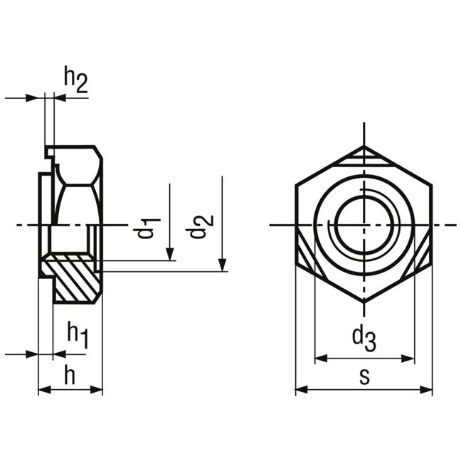 Sechskant-Schweissmuttern INOX A2 M 6 BN31 nach DIN 929 ISO Abmessungen siehe Zeichnung : d1: 6