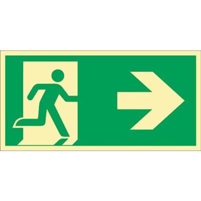 Kunststoffschild · Symbol und Lichtkante langnachleuchtend · nach neuer ASR A1.3/DIN EN ISO 7010 und DIN 67510 · Rettungsweg rechts