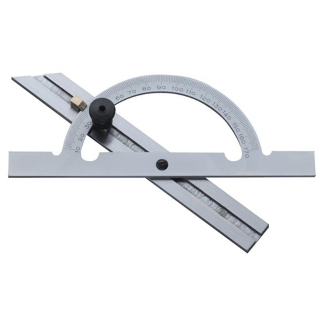 mit in ganzer Länge verstellbarer Messschiene · Schienenende 45° abgeschrägt · offener Gradbogen zum Messen der Winkelgrade 10° – 170° · blendfrei mattverchromt